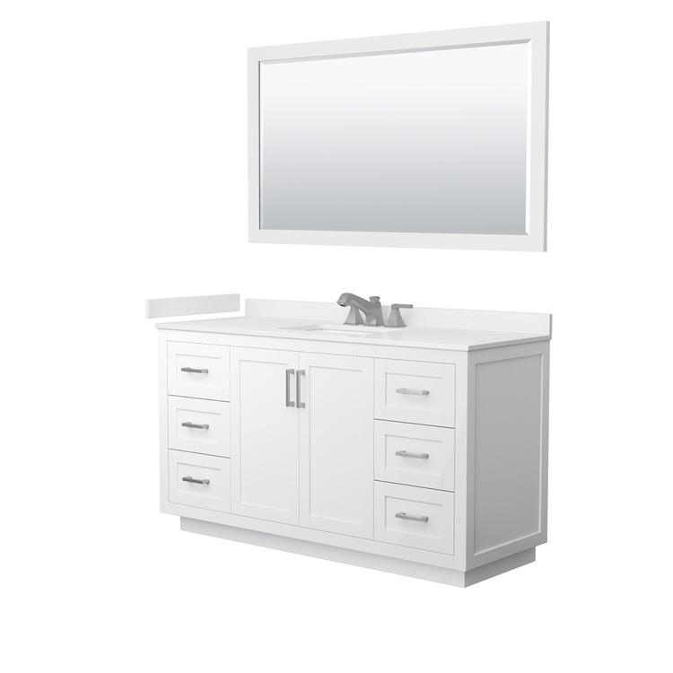 • White Bathroom Vanity 60 Inch with Quartz Countertop and Brushed Nickel Hardware image - 1