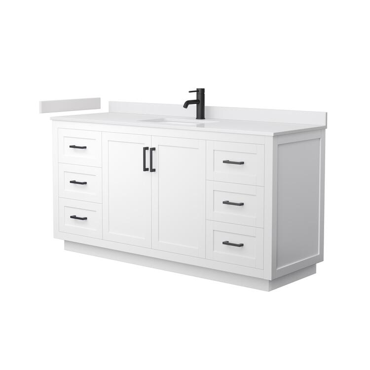 • Wyndham Collection Miranda 66 Inch Single Bathroom Vanity in White, White Cultured Marble Countertop, Undermount Square Sink, Matte Black Trim image - 1
