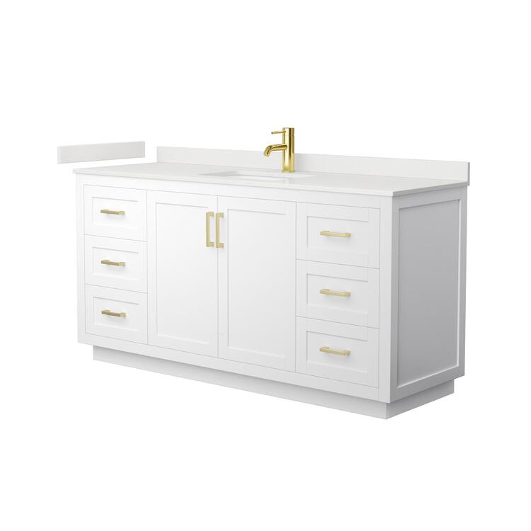 • White Single Bathroom Vanity with Quartz Counter & Gold Trim image - 1