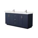 • Wyndham Collection Miranda 72 Inch Double Bathroom Vanity in Dark Blue, White Quartz Countertop, Undermount Square Sinks (1-Hole), Brushed Nickel Trim image - 1