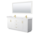 • Wyndham Collection Miranda 72 Inch Double Bathroom Vanity in White, White Cultured Marble Countertop, Undermount Square Sinks, Brushed Gold Trim, 70 Inch Mirror image - 1