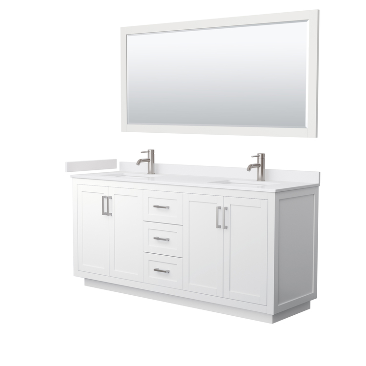 • Double Bathroom Vanity Cultured Marble Top Brushed Nickel Sinks image - 1