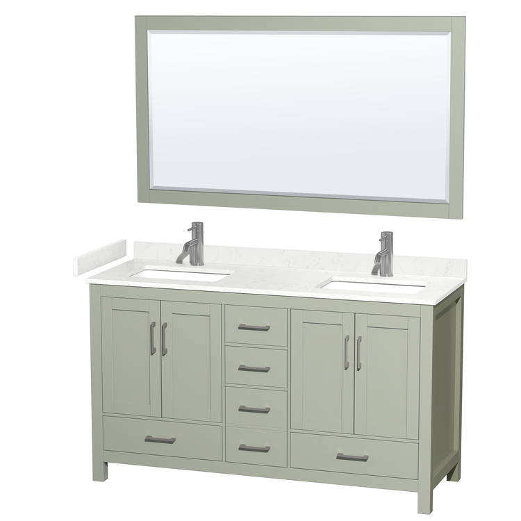 Carrara Marble Bathroom Vanity with Light Green Finish & Brushed Nickel Hardware
