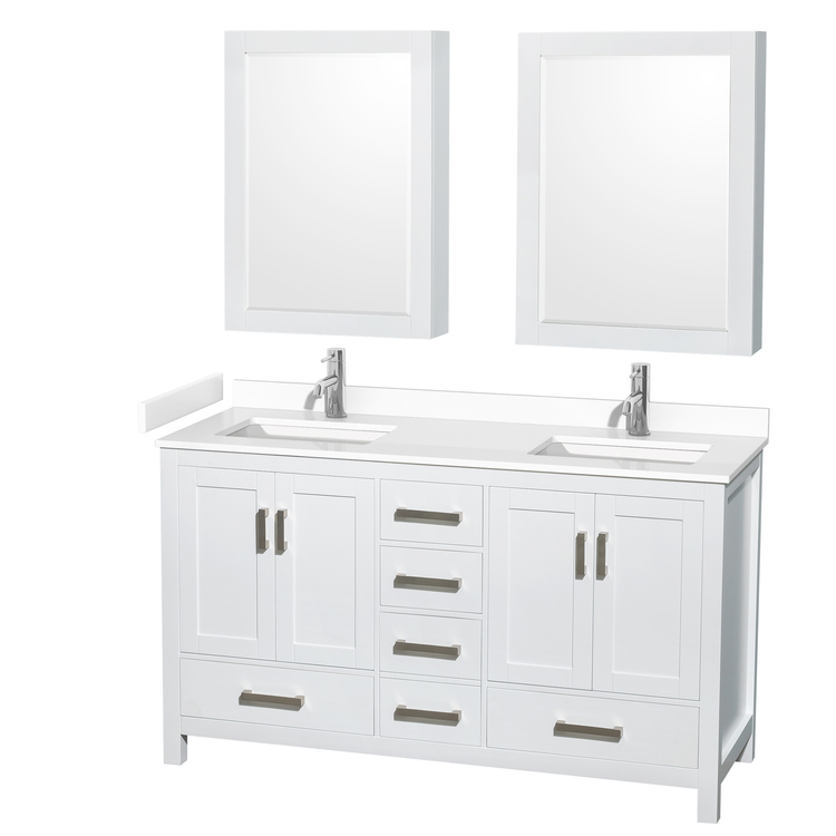 • White Double Bathroom Vanity with Marble Countertop & Undermount Sinks 60 W x 22 D image - 1