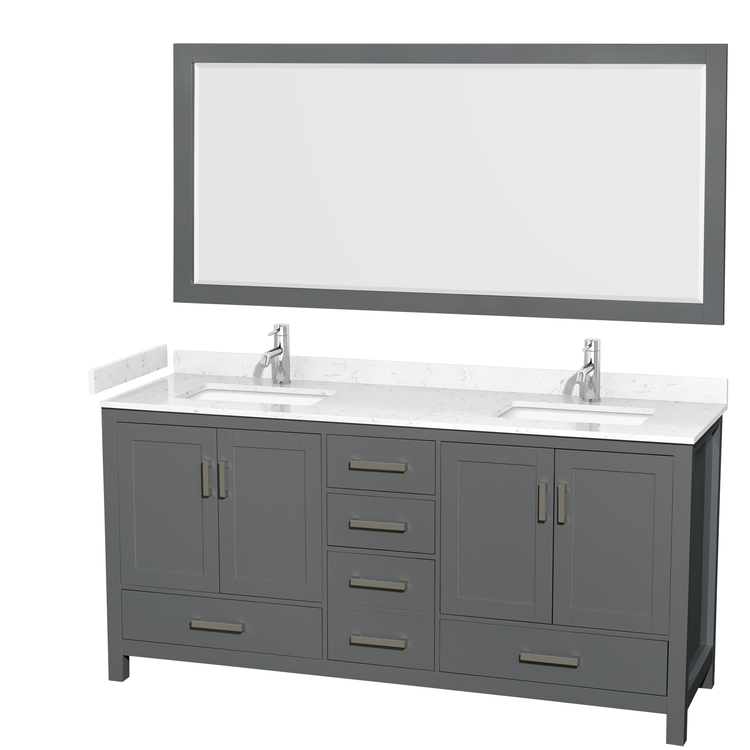 • Dark Gray Bathroom Vanity Double Sink Marble Countertop Mirror image - 1