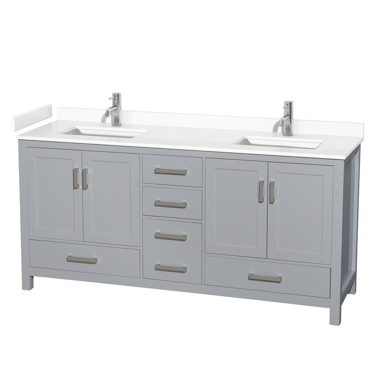 • Gray Double Vanity w/ White Marble Countertop & Undermount Sinks 72 image - 1