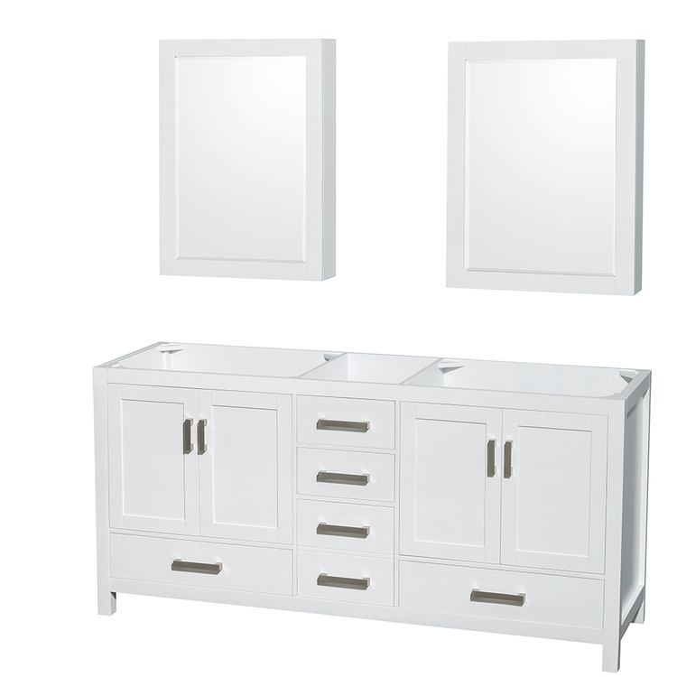 • Wyndham Collection Sheffield 72 Inch Double Bathroom Vanity in White, No Countertop, No Sinks, and Medicine Cabinets image - 1