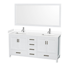 • Wyndham Collection Sheffield 72 Inch Double Bathroom Vanity in White, White Cultured Marble Countertop, Undermount Square Sinks, 70 Inch Mirror image - 1