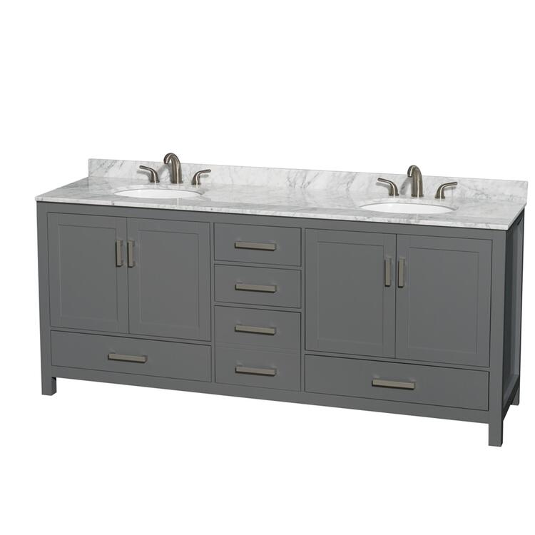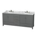 • Wyndham Collection Sheffield 80 Inch Double Bathroom Vanity in Dark Gray, White Carrara Marble Countertop, Undermount Oval Sinks, and No Mirror image - 1