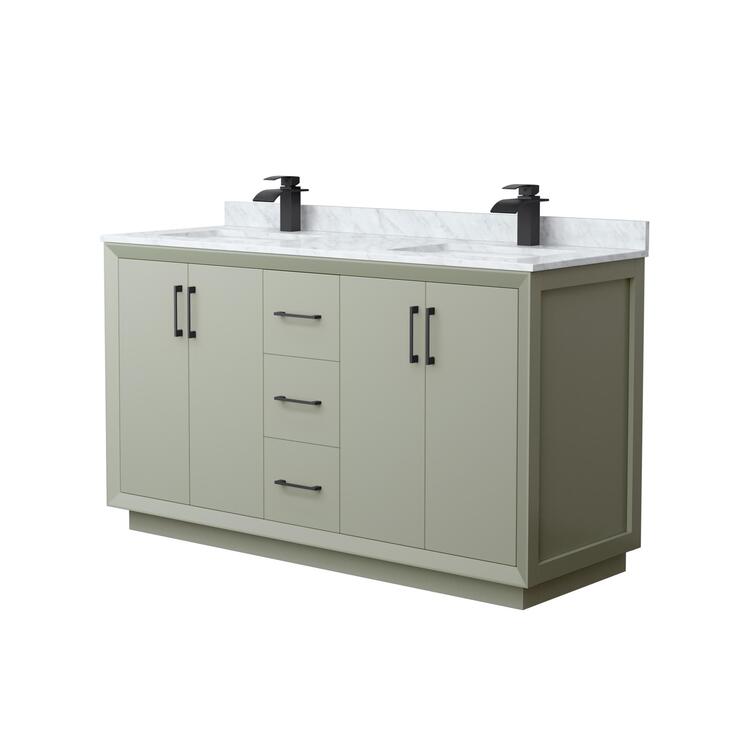 • Light Green Bathroom Vanity White Carrara Marble 60 Inch Double Sink image - 1