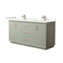 • 66 Inch Double Bathroom Vanity Set, Light Green & Quartz Countertop image - 1