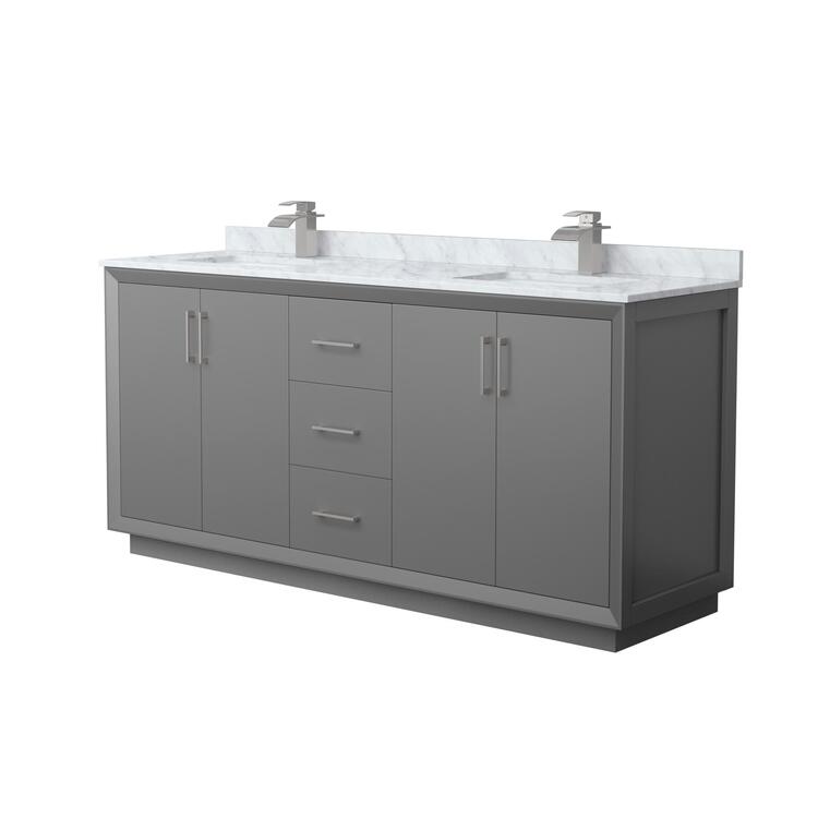 Gray Bathroom Vanity White Marble Countertop Brushed Nickel Hardware