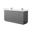 • Gray Double Vanity with White Quartz and Brushed Nickel Hardware image - 1